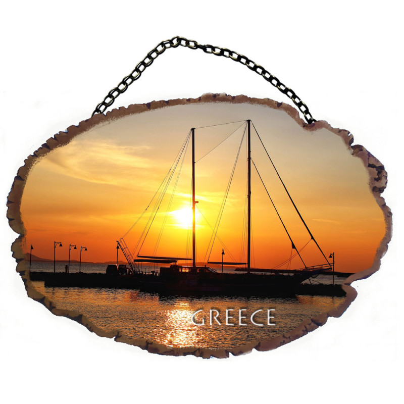 Ιστιοφόρο- Πέτρινο ωοειδές διακοσμητικό με αλυσίδα