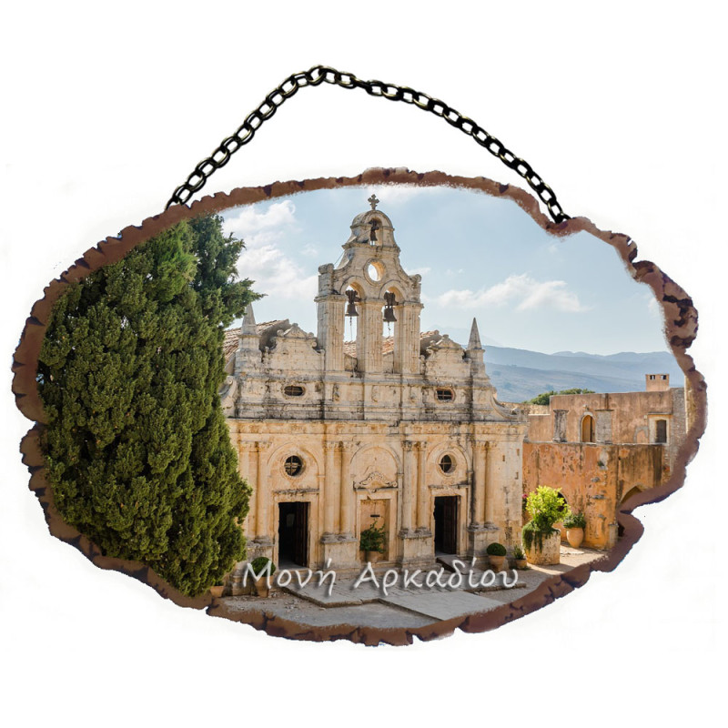 Μονή Αρκαδίου - Πέτρινο ωοειδές διακοσμητικό με αλυσίδα